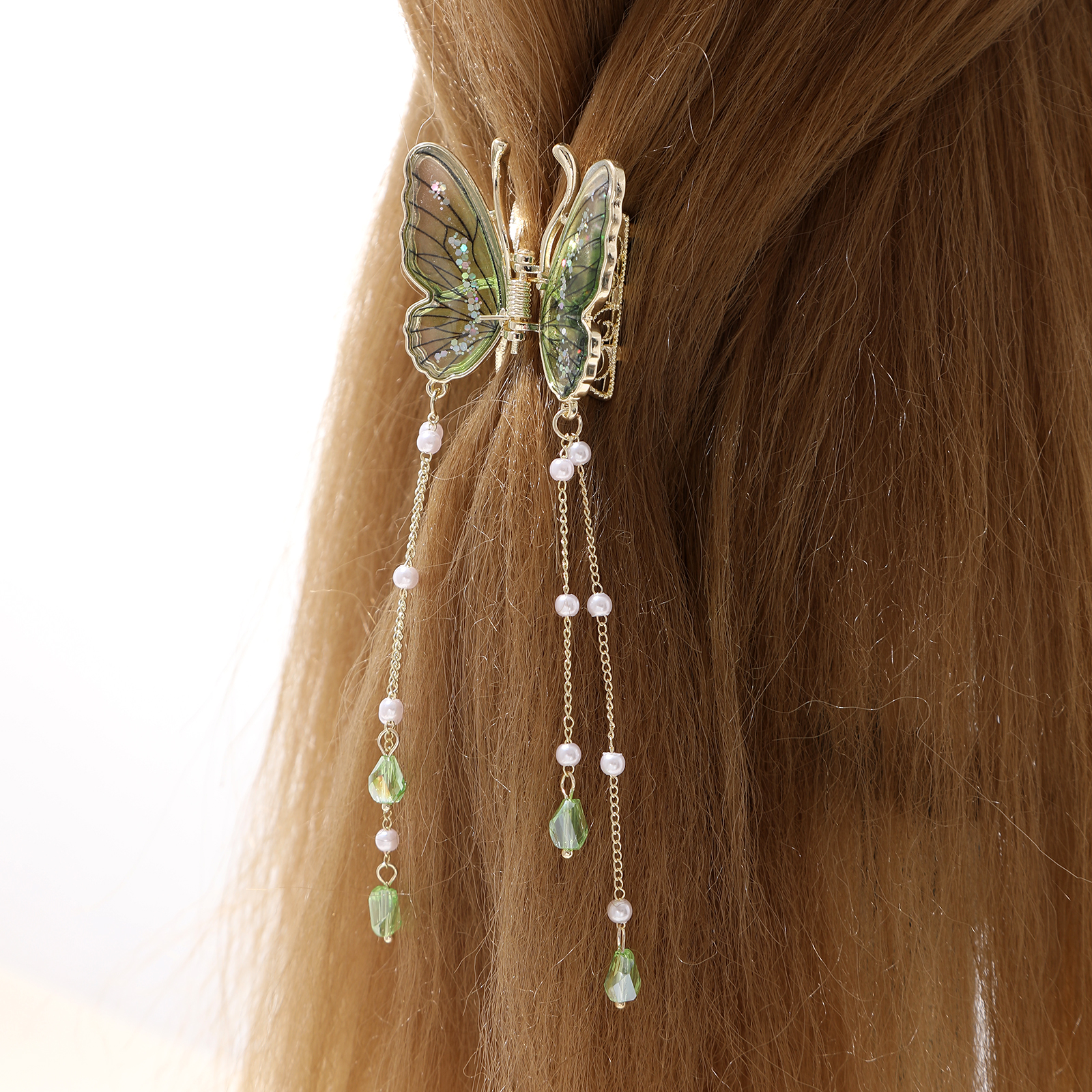 Green Butterfly Hair Clip Claw For Fine Hair